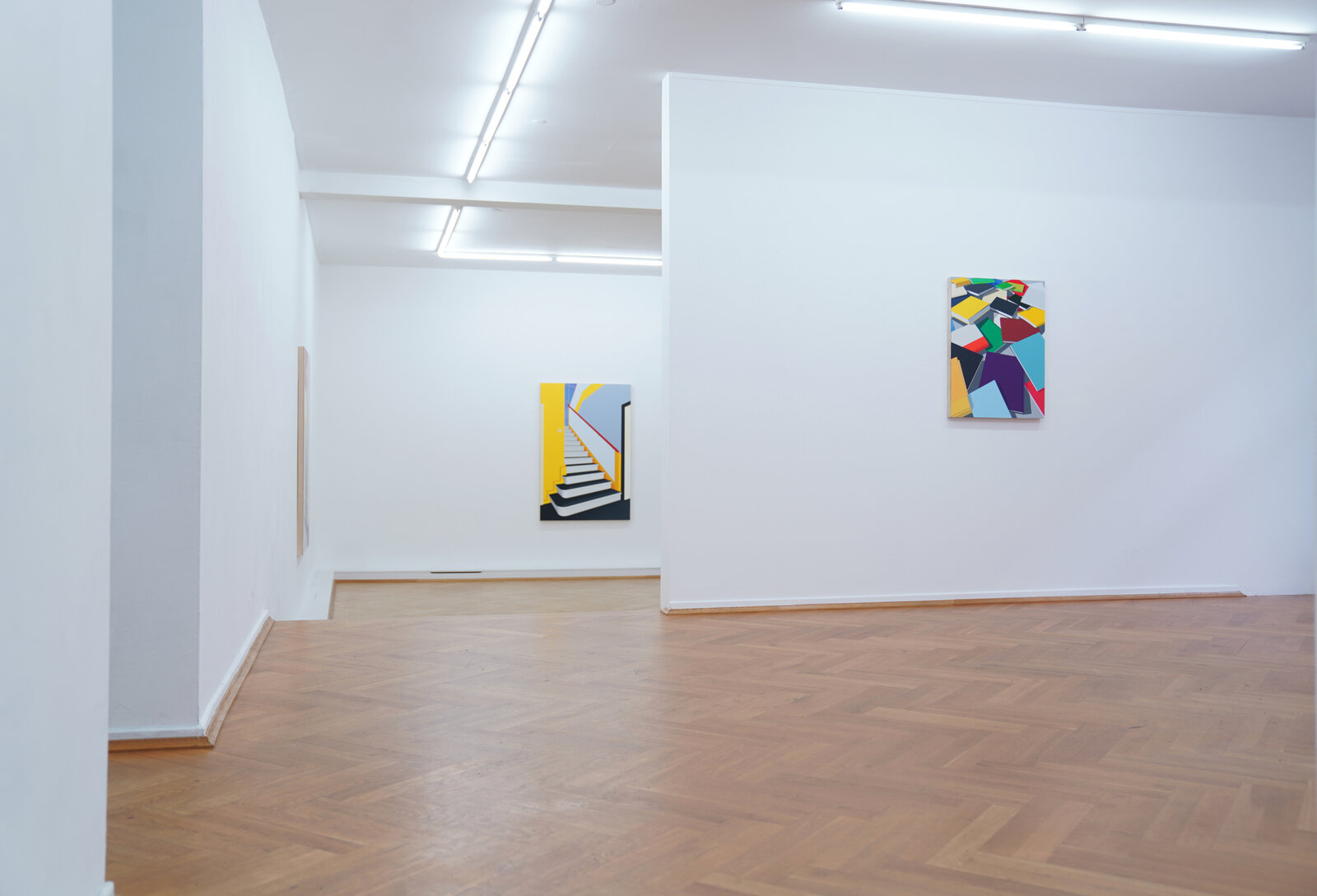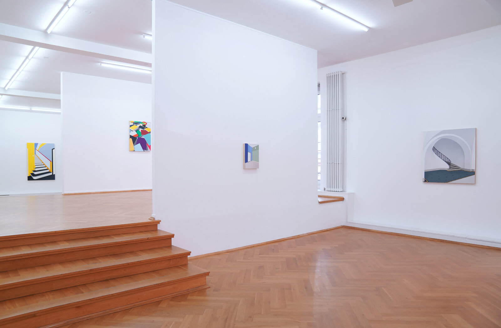 In den Arbeiten zu der aktuellen Ausstellung Passagen öffnet Rich den Blick auf menschenleere Innenräume. Diese Interieurs, inspiriert von historischen Vorbildern wie Oskar Schlemmers Bauhaus Stairway oder literarischen Bezügen zu Hans Fallada, laden die Betrachtenden ein, sich selbst in die Szene hineinzudenken: als Beobachter, als Gast, als Voyeur. Die Leere der Räume erzeugt eine beklemmende Stille – sie verweist auf das, was war, und das, was kommen könnte. Gerade im Fehlen des Menschen wird die Architektur zum Spiegel gesellschaftlicher Zustände, zur Bühne für das Unsichtbare.