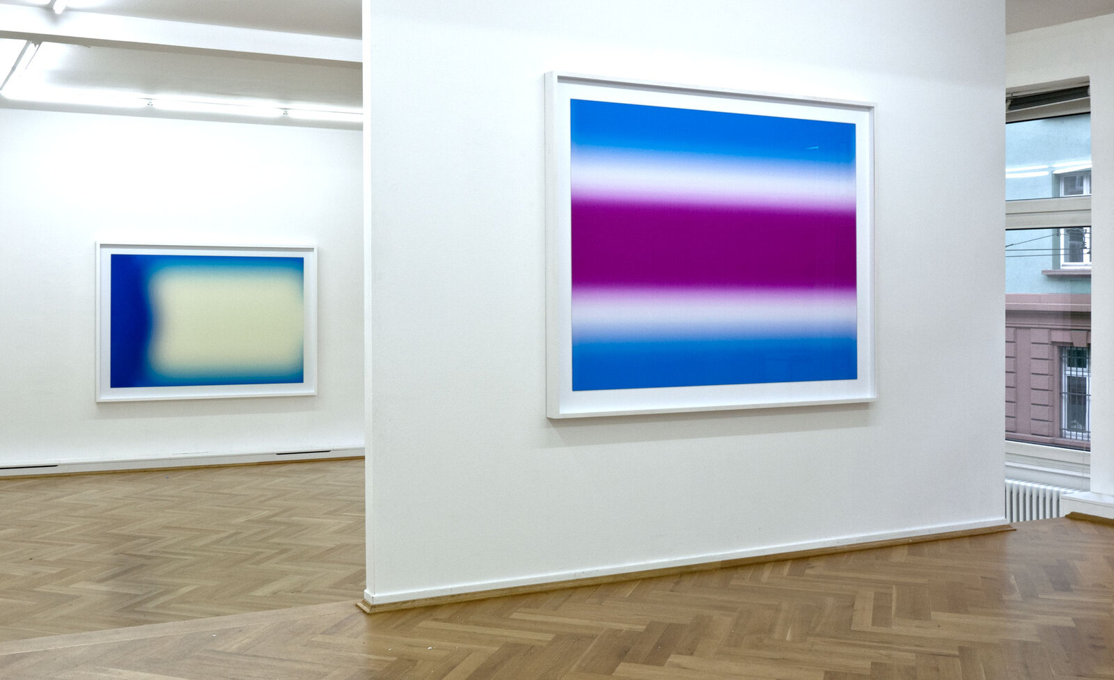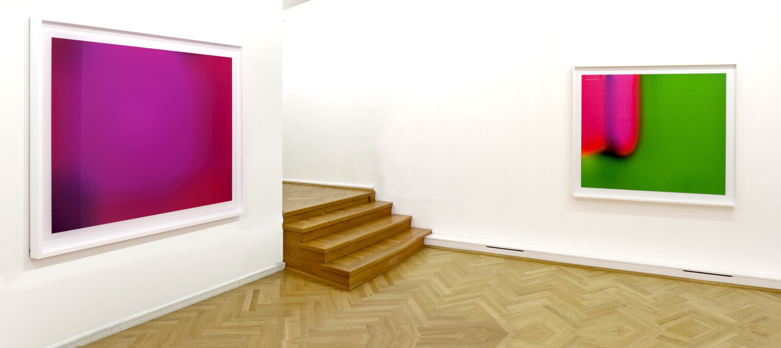 In der aktuellen Ausstellung werden acht Arbeiten aus der neuesten Serie "FLAGS" gezeigt. Die auf verschiedene Länderflaggen zurückgehenden Motive beleuchten die Relevanz der Farbe. Flaggen, sinngemäß Symbole zur nationalen Identifikation, sind in der Regel geometrisch konstruiert. Sie bedienen sich meist der Primärfarben.