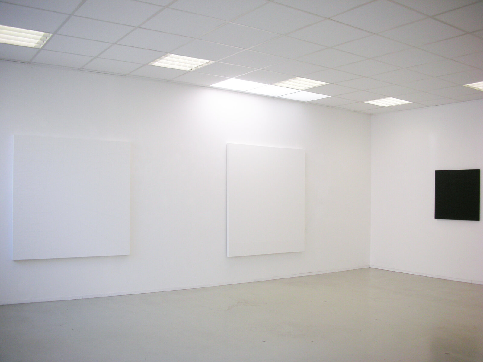 Herbert Hintereggers vier Bilder erschließen sich nicht leicht. Sie fordern Konzentration ein, genaue Betrachtung. Reliefartig, präzis, und für das Auge herausfordernd ziehen sich bei den drei weißen Gemälden Linien über das Bild, jedoch nicht ganz bis zum Rand. Ein Rand des weiß grundierten Bildes wie auch der Raum zwischen den Linien lässt die Leinwandstruktur erkennen. Dem Betrachter wird das Gegenständliche der Bilder deutlich, gerade auch durch die Hervorhebung der Linien, die auch in derselben weißen Grundierfarbe ausgeführt sind und denen nichts Gestisches anhaftet. Nun sind Reliefs meist aus festen Materialien hergestellt, Herbert Hinteregger bezieht sich mit Keilrahmen und Leinwand jedoch auf die Tradition der Malerei. Gerade dazwischen, zwischen Gemälde und Relief und der Benutzung von Grundierfarbe als Farbmittel stellt sich eine Spannung ein, die Fragen eröffnet. Die Titel, meistens bei Herbert Hinteregger „Untitled“, ein näherer Verweis nach einem Ort oder einer Landschaft jedoch in Klammern gesetzt dahinter, sind insofern in ihrer Bedeutung wieder relativiert. Sie geben einen Hintergrund für die Bildfindung des Künstlers an, die auch für den Betrachter einen Bezug herstellen, wenn auch chiffriert. Er verweist darauf, dass die Bildfindung erinnernden Charakter, Bezug nehmenden hat. Sie sind also nicht rein abstrakt, synthetisch, obwohl die Bilder auf den ersten Blick so erscheinen mögen. Es gibt zwischen den Linien Zwischenräume. Gehören diese konstituierend mit zum Bild? Ist das ein gemeinsamer Raum? Der des Betrachters und der des Künstlers zugleich? Die Zwischenräume könnten imaginär durch die Möglichkeit ihrer Fortführung im Raum noch weiter ausgreifen und die Linien durch Ihre Körperlichkeit, ihre reliefartige Hervorhebung weitergedacht noch zusätzlich Platz einnehmen. Ist das Bild fertig? Keine Farbe, die Nichtfarbe Weiß. Lichtschluckendes Weiß, kein Glanz. Vielleicht wäre es eine Lesart zu behaupten, Herbert Hinteregger kritisiert und behauptet sich vor einer geisttötenden Bilderflut durch Respekt vor sich und dem Betrachter, indem sich das Bild zwischen Betrachter und Künstler befindet, immer neu und immer wieder anders. Kunst als Kommunikator. Das Spiegelbild (Kugelschreibertinte mit einem Schwamm auf das Glas aufgetragen) verdeutlicht dies noch mehr. Auch der vorgefertigte Spiegel schafft Raum: Die Illusion des Betrachters im Spiegelbild und die Farbe dazwischen, als Konkretes. Farbe als Material, das künstlerische Medium schlechthin. Um nicht immer nur sich selbst im Bild wieder zusehen hat Herbert Hinteregger seine Kunst dazwischen gebracht.