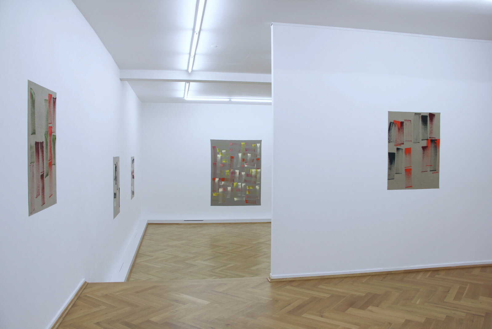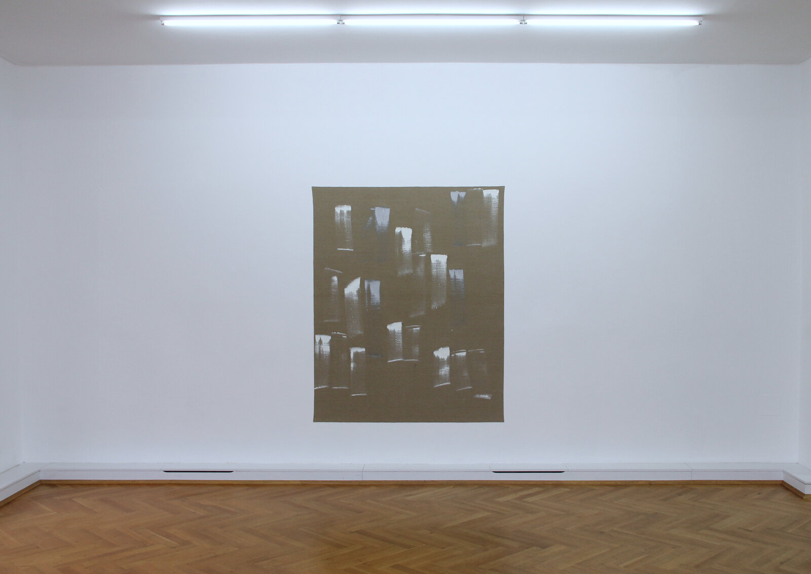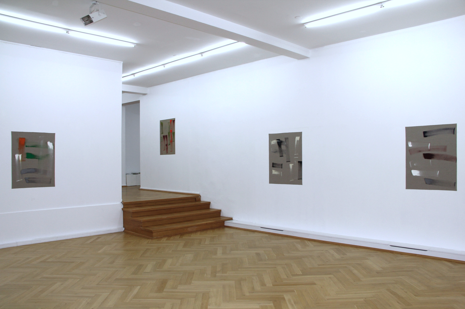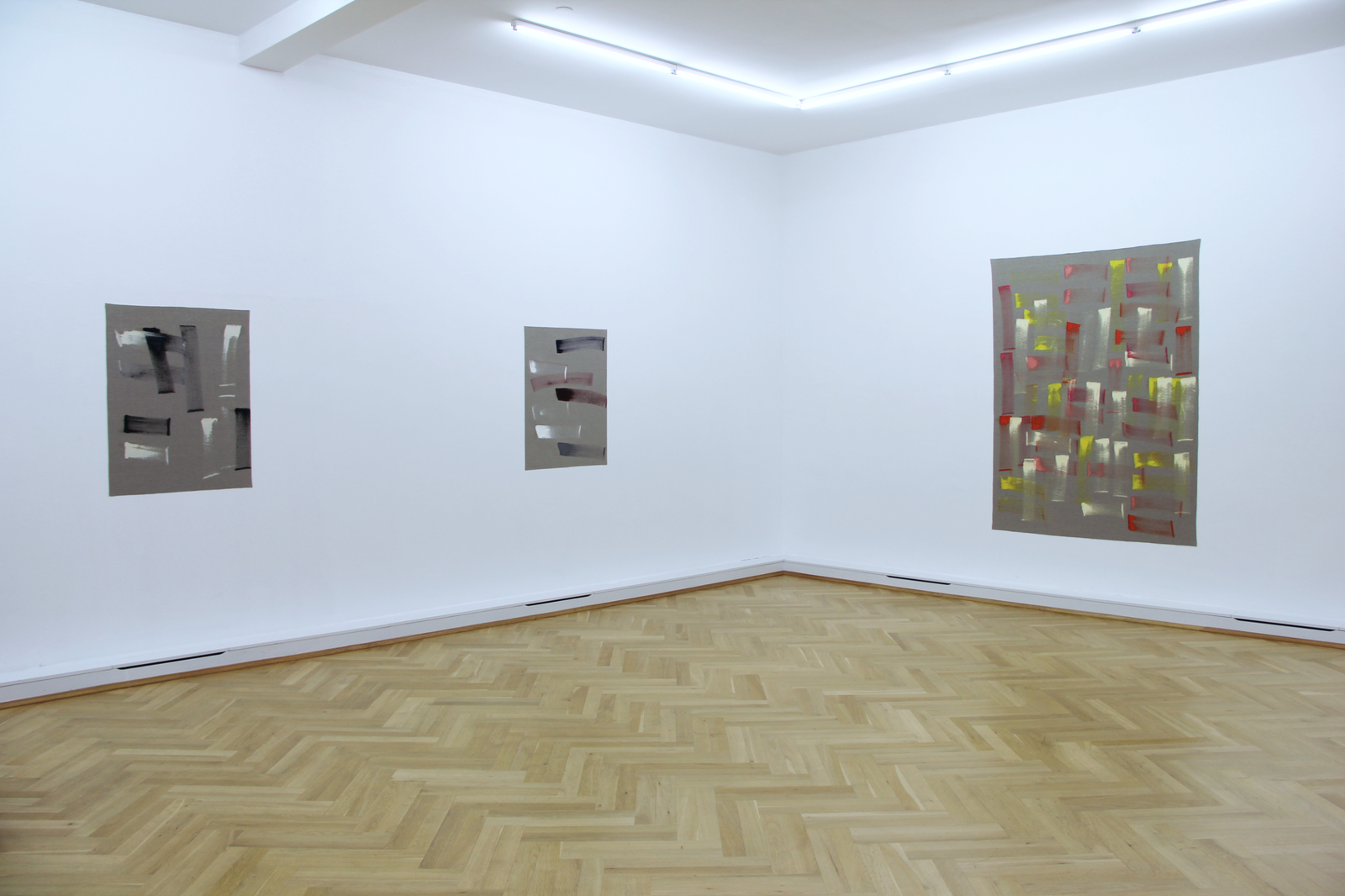 Ingo Meller setzt sich mit den Grundelementen der Malerei auseinander: Leinwand, Farbe, Farbauftrag. Leinwände, deren Form sich an dem Verlauf der Webfäden orientiert, werden als Bildfläche direkt auf die Galeriewände geklebt und so zum Wand-Bild. Die Farbigkeit roher Leinwand und das Fehlen eines Trägers für den traditionellen Bildgrund betonen die Flächigkeit des Bildes und lassen die Malerei besonders plastisch und stofflich erscheinen. Die verwendeten Ölfarben sind gebrauchsfertige Produkte diverser Hersteller, welche für das jeweilige Bild ausgewählt, zusammengestellt und unvermischt zum Einsatz kommen. Meist werden drei oder vier Töne kombiniert, deren Zusammenstellung vor der eigentlichen Arbeit am Bild festgelegt wird. Dabei steht jede aufgetragene Farbe in mehrfacher Relation: zur Farbigkeit der Leinwand, zu den Mitfarben und zu dem sich aus Leinwand und Pinselstrichen ergebenden räumlichen Geflecht. Senkrechte oder waagerechte rasch ausgeführte Pinselstriche setzen die Farbe auf die Leinwand. Die Farbsetzung ist dadurch unwiederholbares Resultat des jeweiligen Augenblicks, das nicht verbessert oder entfernt werden kann. Gestik, Kalkül und Erfahrung sind dabei im Einzelnen unidentifizierbar. Ingo Meller mutet uns zu, zwei Dinge in der Betrachtung seiner Werke auszuhalten: Das Unfertige und gleichzeitig das Vollkommene. Unfertig wirken die Arbeiten, weil es keine abschließende Farbschicht gibt, man sieht den rohen Malgrund und den groben Farbauftrag. Vollkommen sind sie, weil sie in den Augen des Betrachters als Ganzheit, als Bild empfunden werden. Sichtbar entsteht ein Bild, unvollkommen und vollkommen zugleich. Er kann darin schwelgen; aber es ist doch nichts als Leinwand, Farbe, und Farbauftrag, auf die der Betrachter darbend immer wieder zurückgeworfen wird.