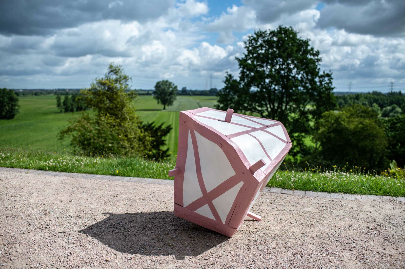 Der zweite Teil der Ausstellungsreihe „Material im Raum“ von Kuratorin Claudia Rasztar widmet sich dem Thema der Konstruktion und Dekonstruktion. Zu sehen sind Fachwerk-Skulpturen, ohne Funktion, aber mit allem handwerklichen Geschick gefertigt. Außerdem großformatige Gemälde, auf denen die Farbe nicht mit dem Pinsel, sondern durch Darüberlaufen verteilt wurde. An den Wänden hängen ornamental gefaltete Stoffbilder, die leicht in sich zusammenfallen können und filigrane Holzarbeiten in schwarz-weiß.