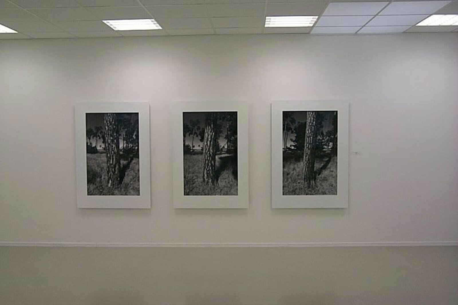 Peter Schlör, (*1964), dessen unverwechselbare Schwarz-Weiss-Fotoarbeiten bereits in zahlreichen Museen und internationalen Galerien und Messen (s.Biografie) zu sehen waren, konzentriert sich in der aktuellen Ausstellung auf die Ausarbeitung fotografischer Bildfolgen. Schlör kehrt sich bewusst vom Einzelbild ab. Durch die Aneinanderreihung vermeintlich homogener Realitätsausschnitte lässt er den Betrachter die Wirklichkeit neu entdecken. Die fotografischen Reihungen beschreiben immer einen Weg. Entlang eines Flusses, eines Waldes, oder über eine Brücke, laden sie den Betrachter ein, den Weg des Künstlers mitzugehen und eröffnen oftmals erst beim zweiten Hinsehen die Unterschiedlichkeit der Einzelbilder In subtiler Weise wird dabei der Standort in die Bildabfolge integriert, wobei die Irritation über den tatsächlichen Aufnahmepunkt durch das Nebeneinander der Bilder herausgestellt wird. Das Nebeneinander liest man – durchaus richtig – auch als zeitliches Nacheinander (so als würde man an einer Landschaft vorbeigehen). Der Künstler schreitet eine Wegstrecke ab, hält in vorher exakt festgelegten Abständen inne und macht jeweils eine Aufnahme. Diese evoziert im Betrachter möglicherweise immer dasselbe Bild, ist aber sowohl in den formalen Details, wie auch in der den Bildern zugrundeliegenden Realität, gänzlich verschieden. In den Arbeiten spiegelt sich die „Wiederkehr des Immergleichen“. Hier spürt der Betrachter zum einen die Langsamkeit des Fortschreitens, die er leicht als Stillstand interpretiert – wenn er denn nicht bereit ist, die gemächliche Veränderung wahrzunehmen und zusammen mit dem Künstler den Standort zu wechseln.