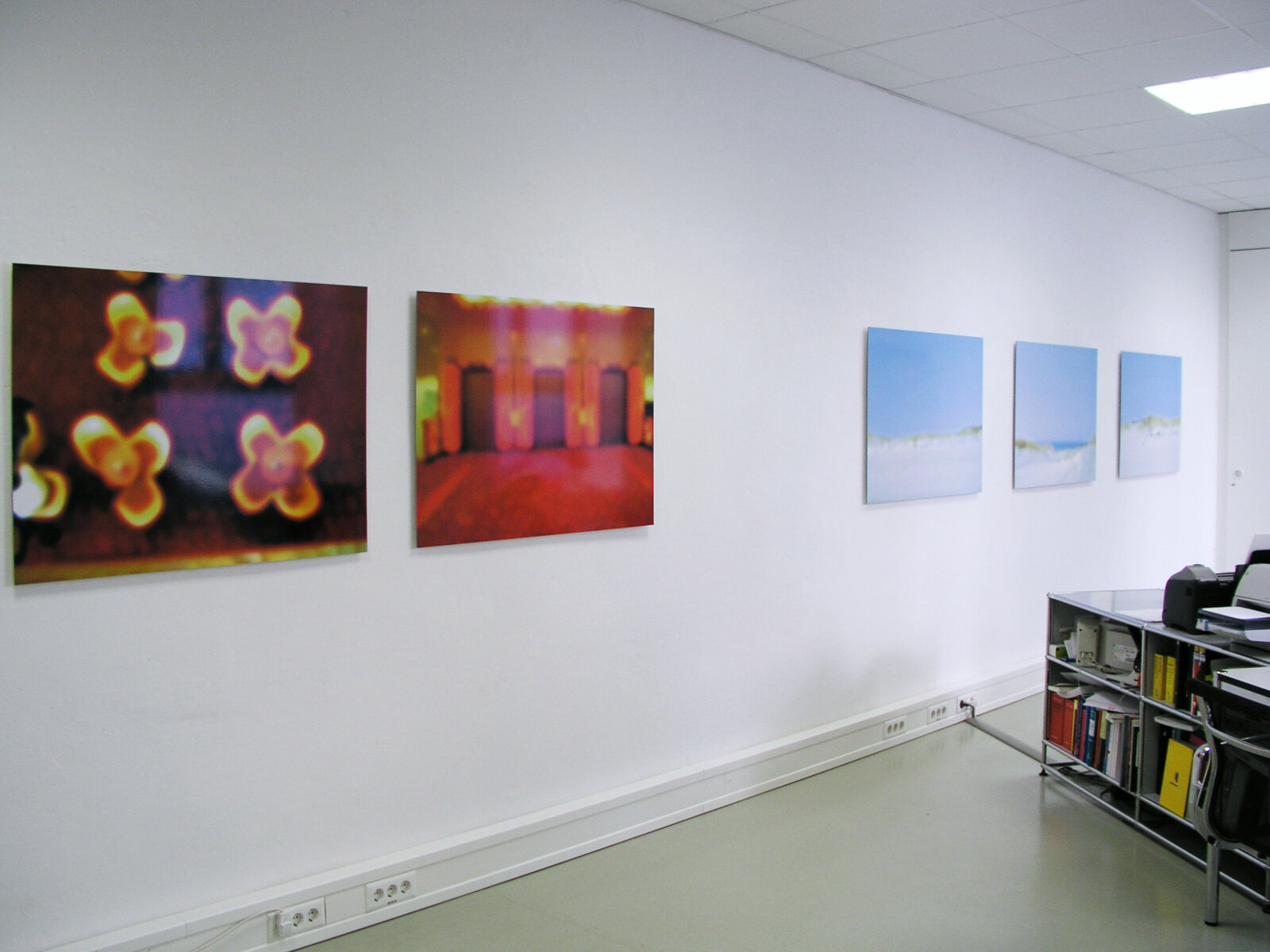Neben den Reihen „Indoors“ und „Skyline“ zeigen wir Arbeiten aus der neuen Serie „Candies“, die sich durch ihre verschwimmende, an Aquarelle erinnernde, Oberflächenstruktur von den vorangegangenen Serien abheben. Die Werke der „Candies“ changieren mit leuchtenden Farbflächen zwischen den Medien der Malerei und Fotografie. Zwischen Reduktion und Abstraktion inszeniert, lässt sich für den Betrachter das Motiv nicht eindeutig erschließen. Das mysteriöse und faszinierende Phänomen der Unschärfe verführt und sperrt sich gleichermaßen. Die Bilder bleiben rätselhaft.