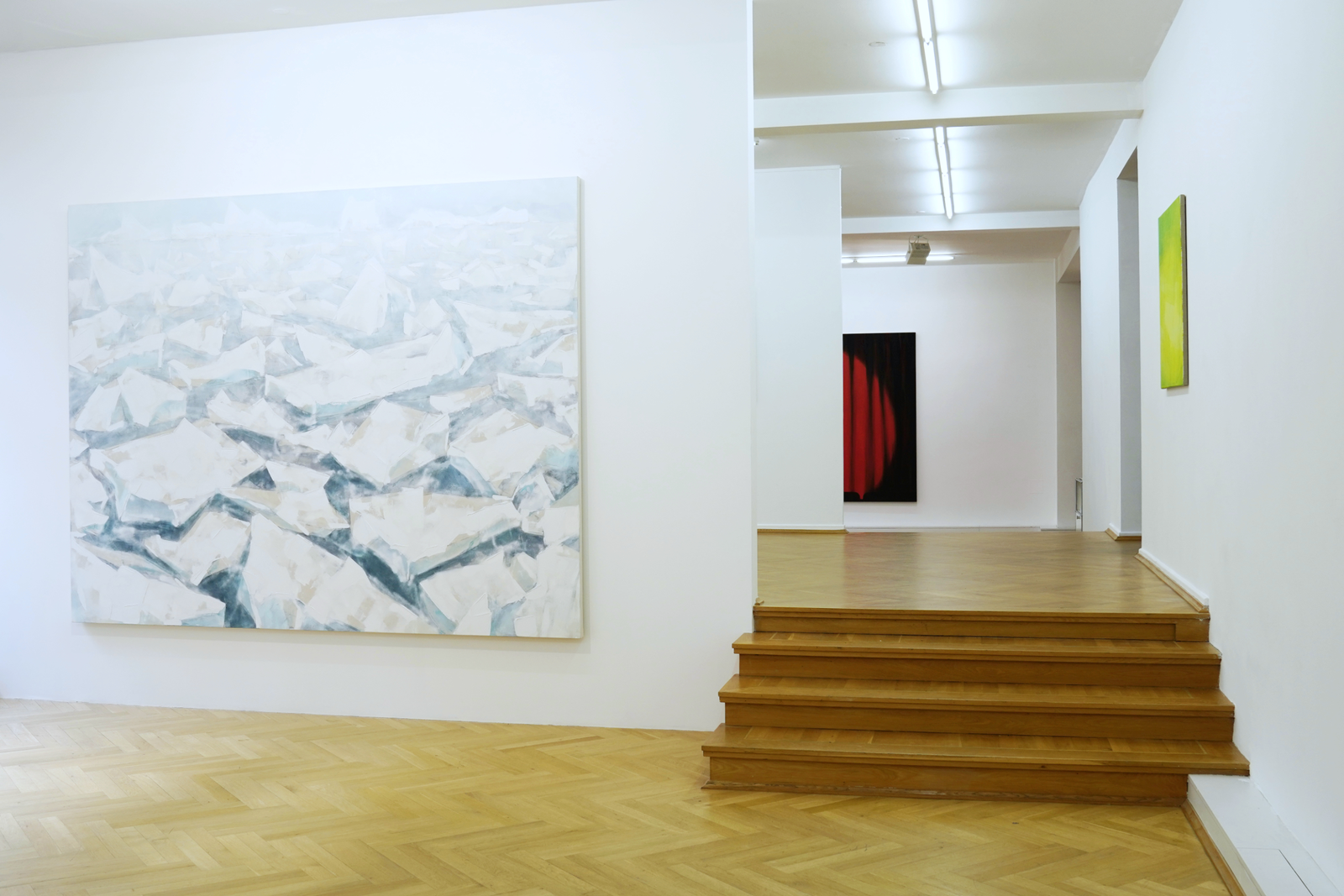 Die etymologische Dimension der „Le Corps de la Couleur“ Reihe und die Motiv- und Farbsetzung sowie die Genres der ihr zugehörigen Gemälde reflektieren Robert Zandvliets Interesse an Formen von Variation; vielleicht zeigen sie sogar ein wenig Spiel. Denn in seinen Arbeiten sind Bildgegenstände Kippfiguren in einem Raum zwischen Abstraktion und Figuration. Diese Loslösung von Darstellungstraditionen im Sinne eines Erkenntnisgewinns durch die Malerei selbst nimmt ihren Ausgang in Zandvliets künstlerischer Praxis. Die Anwendung variierender Maltechniken macht verschiedene Herangehensweisen an das Thema Bildfarbe und an die körperliche Erscheinung von Farben erst möglich. Während die natürlich wirkende Tiefe des Werkes „Git“ durch den Farbauftrag von Acrylfarbe mit einer Farbwalze auf nicht grundierter Leinwand zustande kommt, werden pastos gespachtelte Reliefs und Ausschnitte des Malgrundes in „IJs“ zu Lichtpunkten, die die Betrachterinnen und Betrachter in einer Kombination mit Schichten von Sprüh-, Öl- und Acrylfarbe tief in ein Meer aus Eisschollen eintauchen lassen.