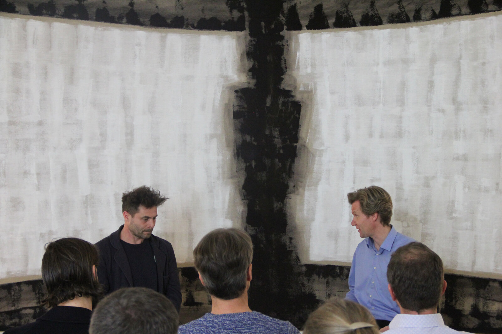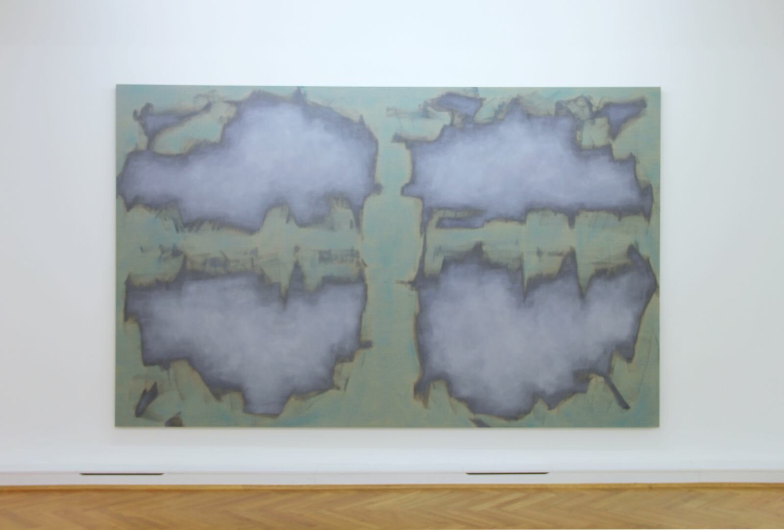 Drei Jahre später griff Zandvliet das Motiv wieder auf und räumte ihm in Stage of Being förmlich wie bildlich Platz ein. Der leicht gebogene Bildschirm erstreckt sich in Gänze über die etwa vier Meter breiten Leinwände. Die menschliche Figur in der Mitte wurde weiter vereinfacht und auf eine langgestreckte Urform reduziert. Mit diesen beiden Bildelementen hat Zandvliet sieben Leinwände gemalt, in denen sich das Motiv auf sehr unterschiedliche Weise manifestiert, sowohl visuell als auch in Bezug auf den emotionalen Gehalt. In jedem Bild gehen Schirm und Figur eine andere Beziehung miteinander ein, ein Verhältnis, das nicht nur den feinen kompositorischen Unterschieden zu entnehmen ist, sondern vor allem aus der Struktur der Farboberfläche sowie dem Charakter der Pinselstriche und der Intensität und Tonalität der Farben.