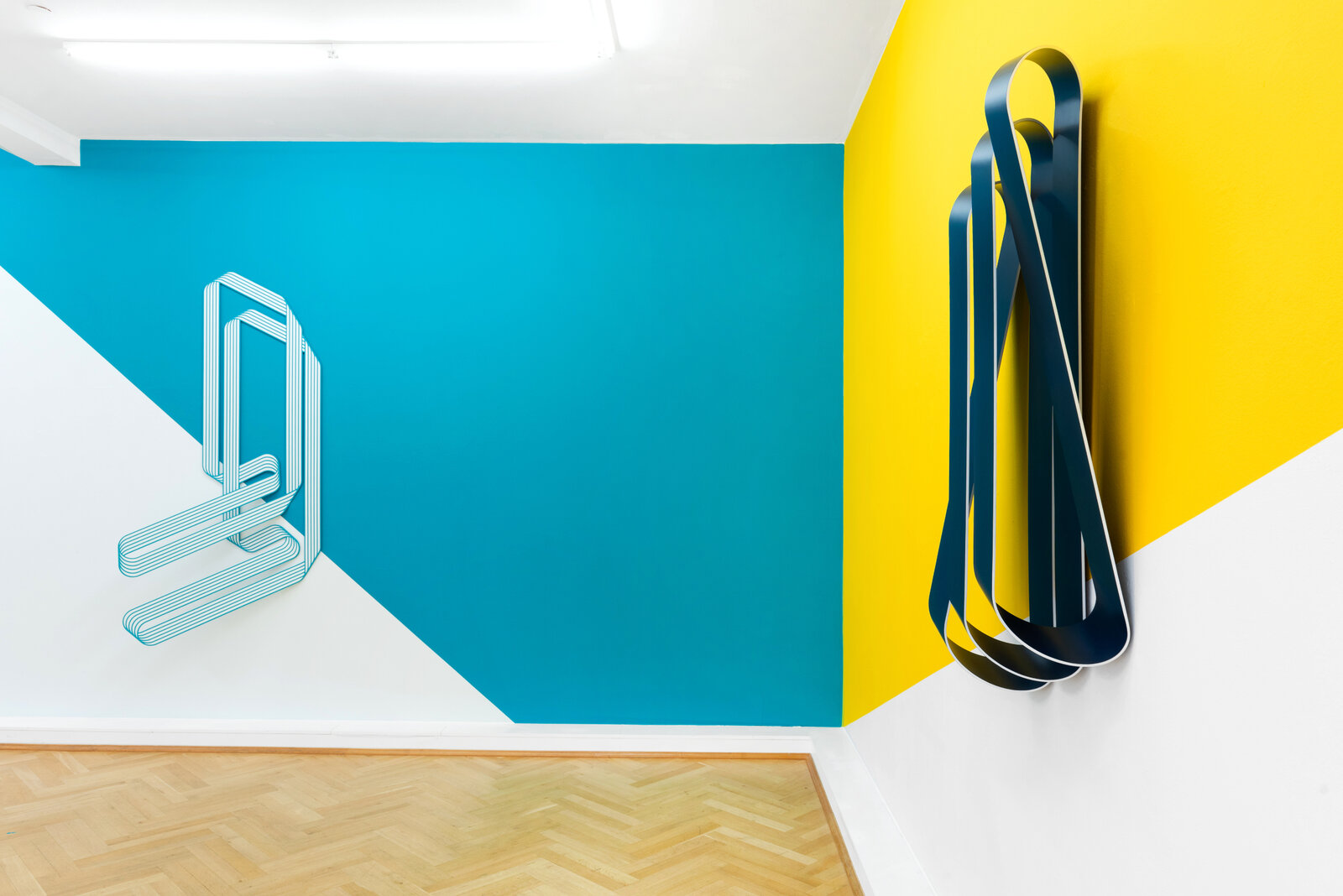 Die Einzelausstellung von Terry Haggerty bei Bernhard Knaus Fine Art präsentiert eine beeindruckende Welt aus sich drehenden und faltenden Reliefs, die vor dem Hintergrund verwinkelter, eigens für den Galerieraum entworfener Wandmalereien gezeigt werden. Haggerty schafft neuartige Formen aus Aluminium, in denen Zwei- und Dreidimensionalität eine faszinierende Symbiose eingehen.