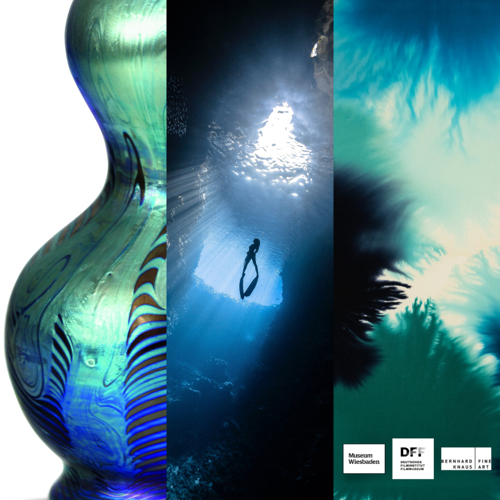 The topic of water is currently on everyone's lips. No other element is as closely linked to all life. Everything has always revolved around water, since it is on the one hand the basis of life for all of us and at the same time a habitat in its own right. Basically, everything in and around us is constantly in flow. And yet there are moments when water seems strange, even frightening. This summer, the three exhibitions "Im Tiefenrausch" at Deutsches Filmmuseum, "Wasser im Jugendstil" at Museum Wiesbaden and "Reality Blue" at Bernhard Knaus Fine Art deal with water in different ways. In them, the theme is illuminated through painting, film, or even historical everyday objects.