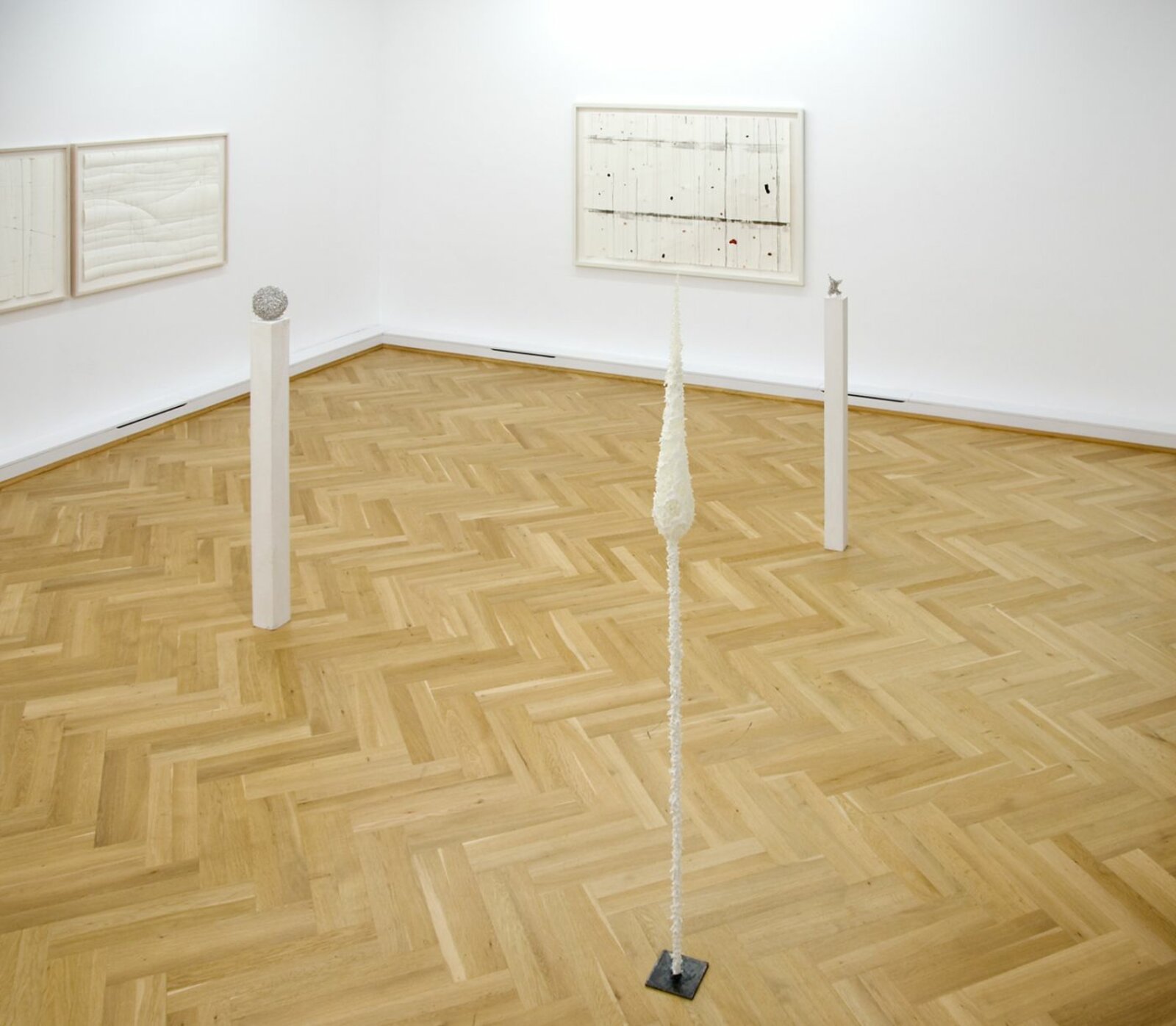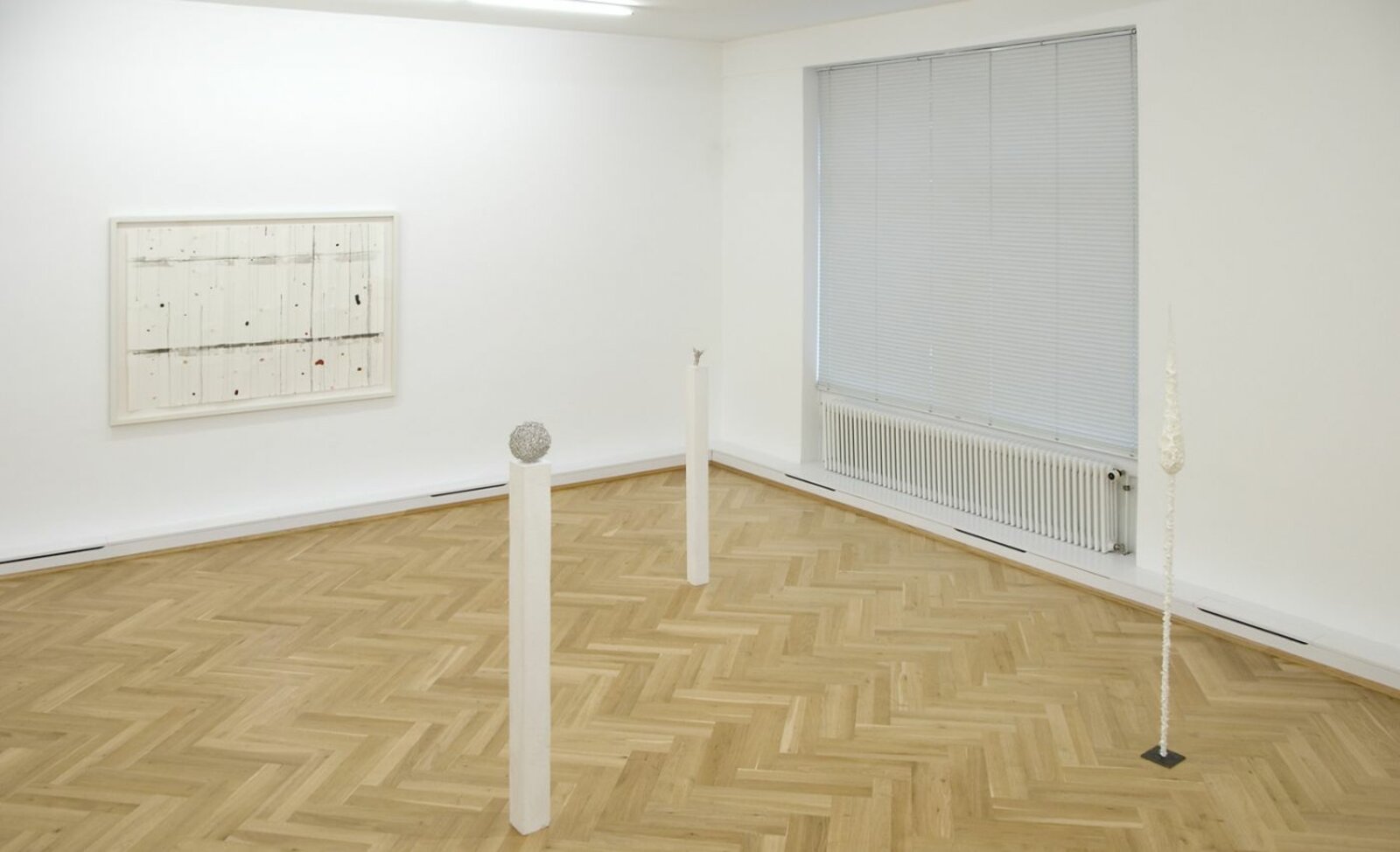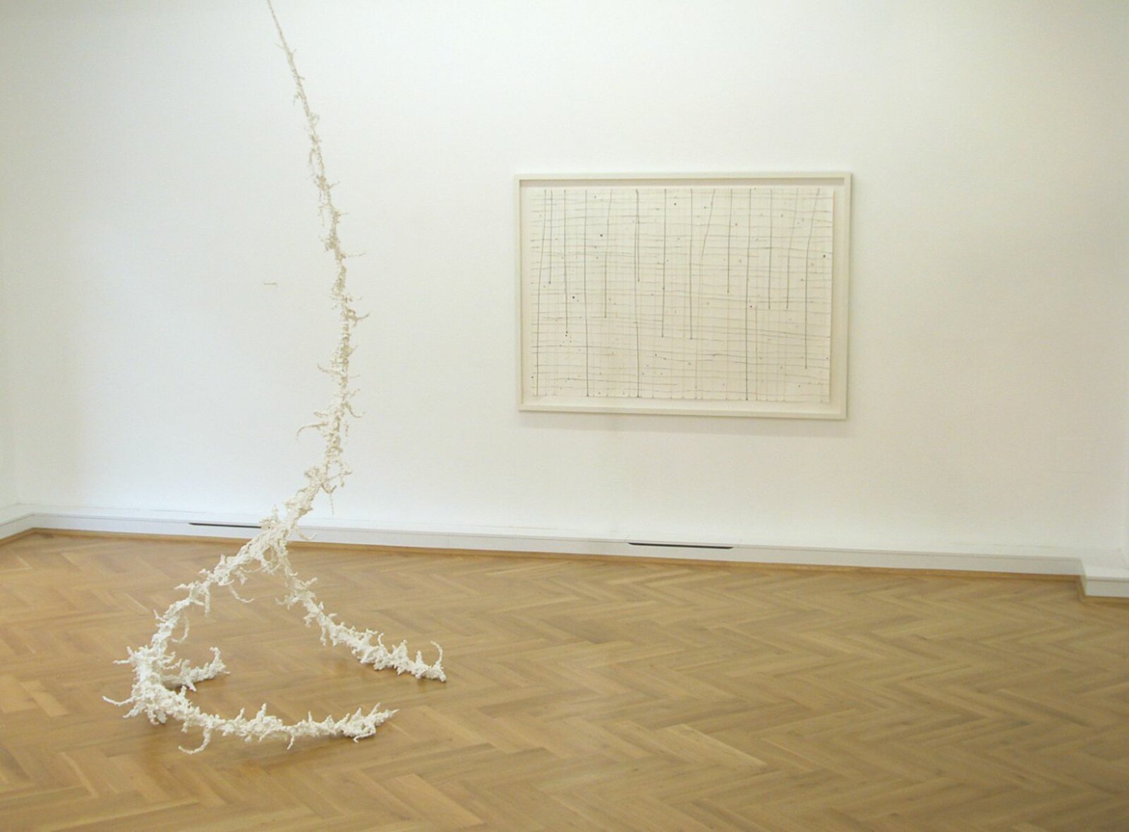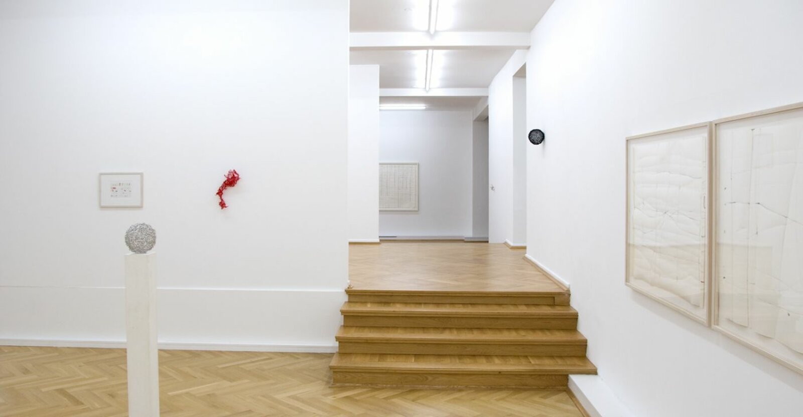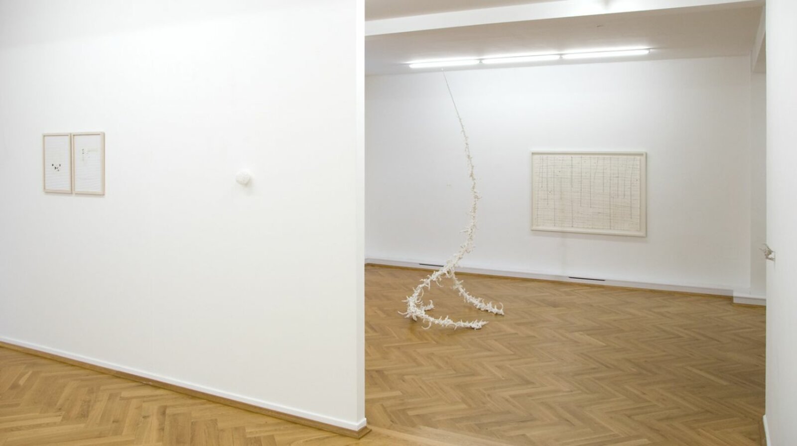 The drawings by Harald Kröner stand out by their delicate way of composing forms and lines. Beside small drawings and collages made with a variety of different papers, the exhibition shows also large size works of the series “Yappanoise”. Grids on big paper sheets traced in lines of ink and small colour spots, form shapes and structures with a high quality of lightness and fragileness. Harald Kröners works on paper narrow and focus the eye's attention. You have to "read" every line. They demand intimacy and a kind of commitment. But what they give back, in their simplicity and richness, is indescribably moving.