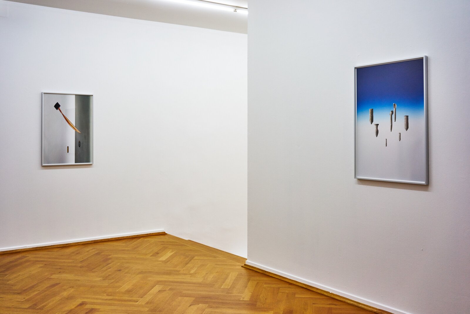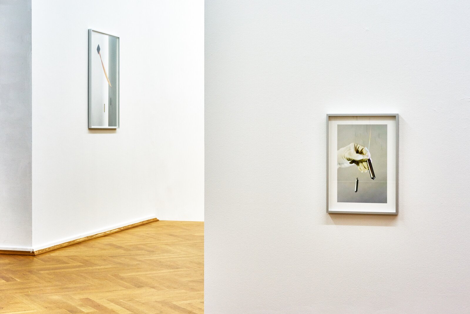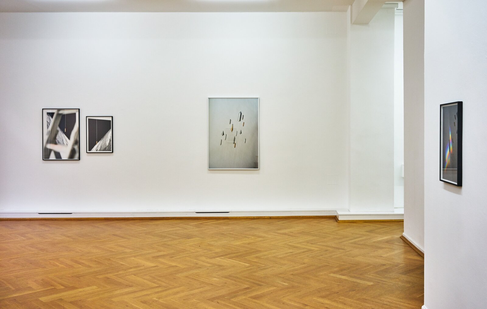 For Ornaments of Property Sascha Pohle arranged hundreds of reject DVD and CD computer drives, the relics of a dying mnemonic and reproduction technology to create fictitious, ruin-liked architectural fragments kindling associations with different ages, cultures and worlds. The objects in Flo Maak’s photo series Gravity likewise bring to mind past ages when the development of technology was pegged directly to human progress. Mainly he has gathered together plumb lines, old measuring tools consisting of a weight on a line, that Maak photographically stages against the background of the modern space revolution as flying objects. Sascha Pohle’s Passage also intervene directly in the space. Knitted wools with abstract patterns that are based on digital shots of different asphalt and concrete floors are translated into soft and mobile terrain that are constantly being re-folded and arranged for the course of the exhibition. In String Stories Flo Maak addresses natural patterns and presents in part destroyed webs of the golden silk spider that is widespread in Korea. Maak photographed them in front of colored backgrounds and using artificial light, thus rendering the fine threads visible. The title forges a link to archaic games in which a thread was spun with the finders of at least two hands to create figures that often imitated nature. In this context, Sascha Pohle’s video film After the Gift - Blossfeldt’s Fan revisits the interaction of structures between humans and nature. On view are different woven fans waving in slow motion to turn book pages showing Karl Blossfeldt’s photographs of buds, blossoms and seeds, a mimetic game with shapes, colors and the patterns of plants and fans that is constantly being kept in motion by the invisible element of wind. As alluded to in the title, After the Gift - Blossfeldt’s Fan points to a gift having a second lease of life and to the related relationships that like those in String Stories depend on cohabitation and transformation.